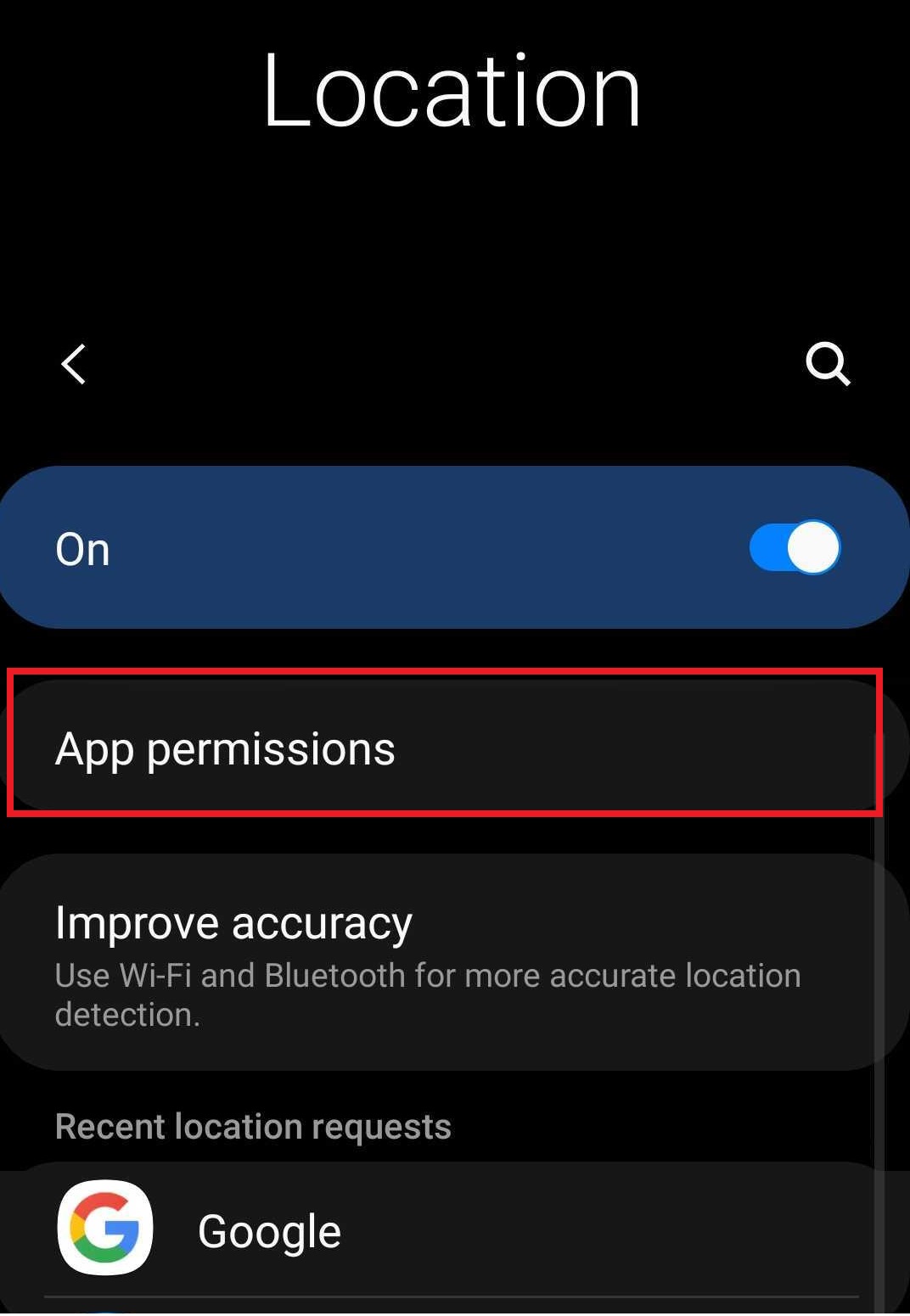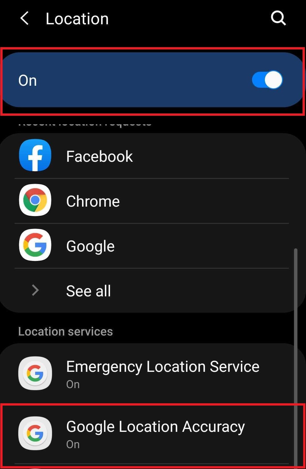 Step 3: Ensure that Location is on. If it is not, move the button to the right to turn it on. Then tap on “Google Location Accuracy”.
