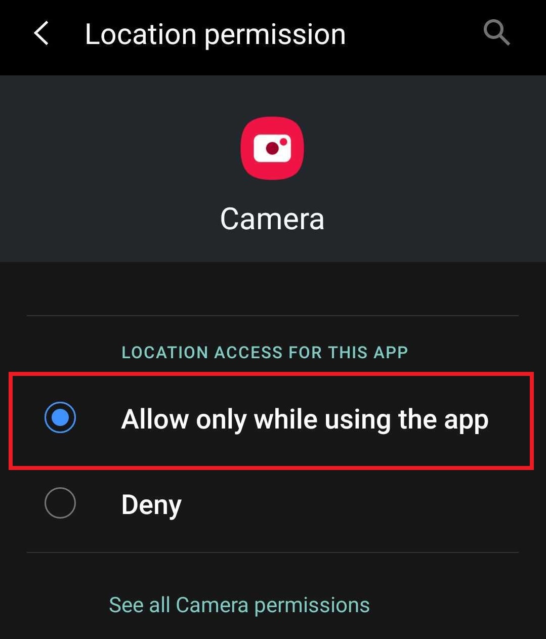 Step 7: Ensure that “Allow only while using the app” is selected. If it isn’t, then tap on it to select it.